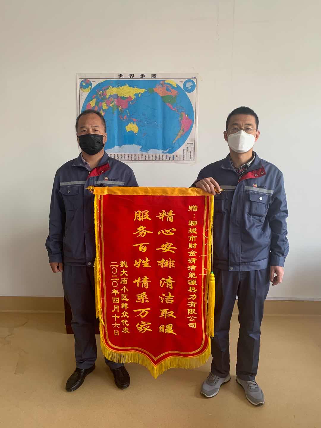 4月17日上午,魏大廟業(yè)主代表小組一行3人來到聊城市財(cái)金清潔能源熱力有限公司,向聊城市財(cái)金清潔能源熱力有限公司贈(zèng)送一面印有“精心安排清潔取暖,服務(wù)百姓情系萬家”的錦旗,對(duì)熱力公司攻堅(jiān)克難、全力施工,及時(shí)為魏大廟小區(qū)換熱站改造,送去溫暖表達(dá)感謝之情。在疫情期間,向魏大廟小區(qū)居委會(huì)送去防疫物資,小區(qū)全體居民對(duì)熱力公司優(yōu)質(zhì)服務(wù)表示由衷的肯定和誠摯的謝意。